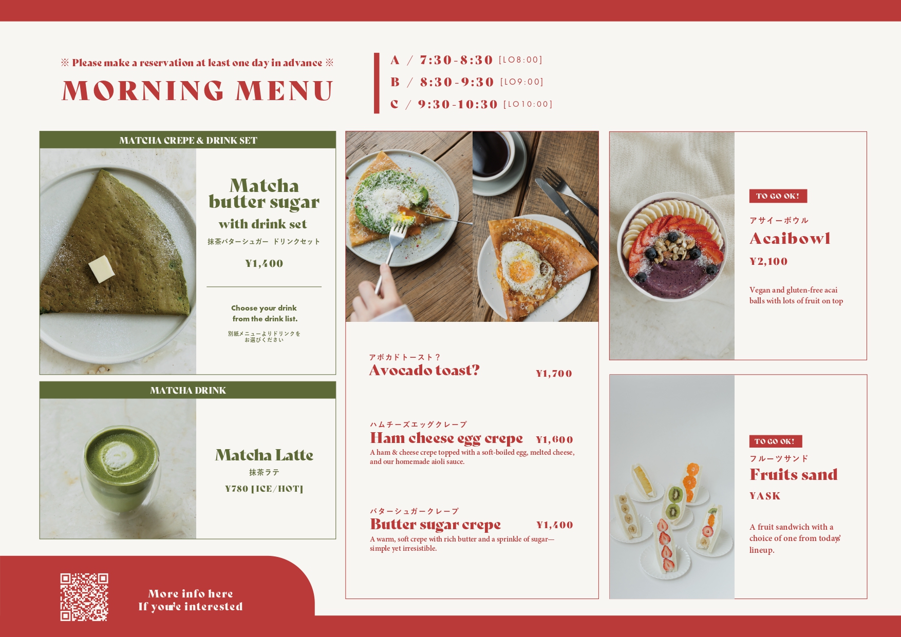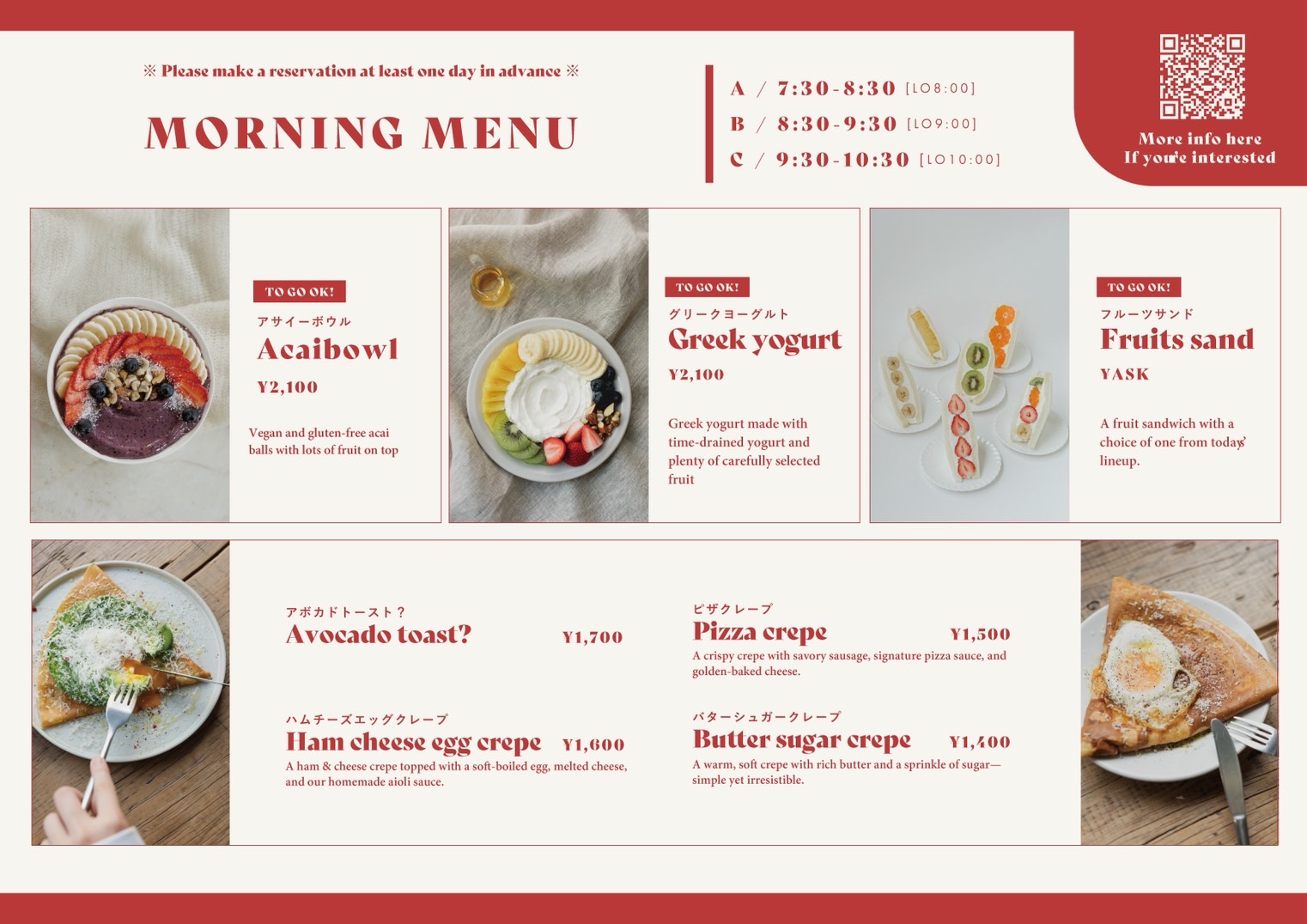 如果预订有空位,可在当天使用。如果预订人数较多,时间可能需要调整,或餐厅可能无法提供或可能以外卖容器提供。建议提前预订😆。 |